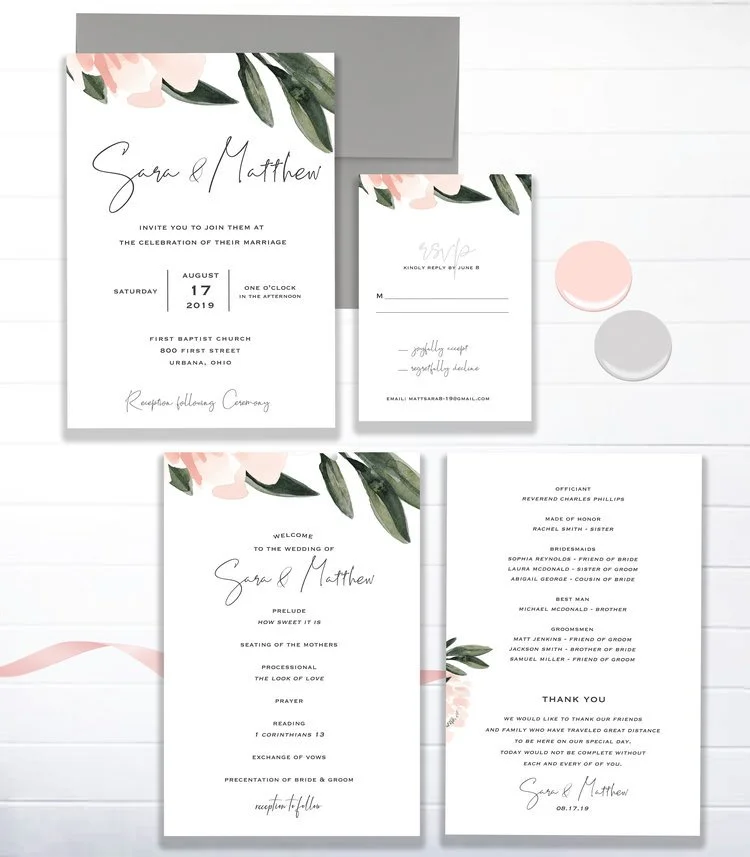 Email us any ideas you have. For example: “I am looking for a clean and classy style, and I’d like to incorporate a little bit of watercolor florals” Or send us a sample photo of what you have in mind.